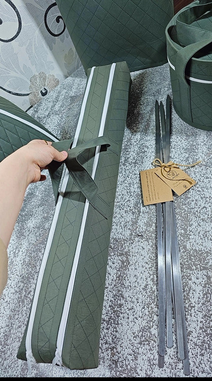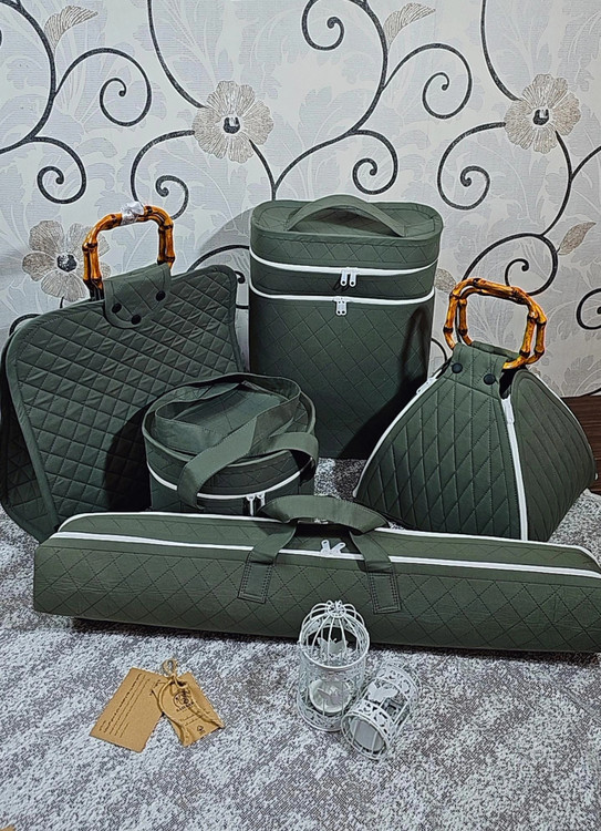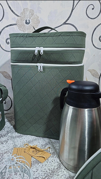 یه ست کامل پیکنیک و سفر فوق العاده کاربردی .کاور فلاسک دو قلو دو طبقه هست و از هر دو طبقه میشه استفاده کرد..کاور سیخ دوبل هست و دوجای مجزا برای انواع سایزهای سیخ داره ..کاور بشقاب تا ۱۸عدد بشقاب جا میگیره .میتونین کاربرد تک تک آیتم ها رو تو پیج اینستا ببینید یا واتساپ پیام بدین براتون بفرستیم